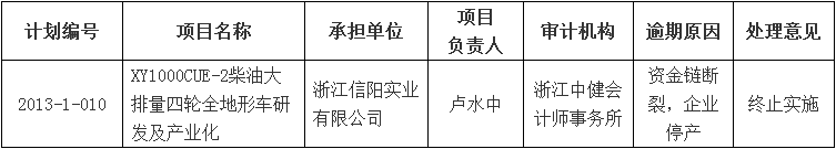 根據(jù)《金華市級科技計(jì)劃項(xiàng)目驗(yàn)收管理辦法》(金市科字〔2015〕83號)相關(guān)規(guī)定,經(jīng)研究,我局?jǐn)M對浙江信陽實(shí)業(yè)有限公司承擔(dān)的市級科技計(jì)劃項(xiàng)目“XY1000CUE-2柴油大排量四輪全地形車研發(fā)及產(chǎn)業(yè)化”(計(jì)劃編號:2013-1-010)進(jìn)行終止處理,對項(xiàng)目負(fù)責(zé)人和主要股東記錄不良科研信用?,F(xiàn)予以公示,自公示之日起5個工作日內(nèi),有關(guān)單位或個人如有異議,應(yīng)當(dāng)以實(shí)名與我局聯(lián)系。聯(lián)系方式:金華市科技局工業(yè)與高新技術(shù)處,電話:82469791;市紀(jì)委駐市科技局紀(jì)檢監(jiān)察組,電話:82387952。