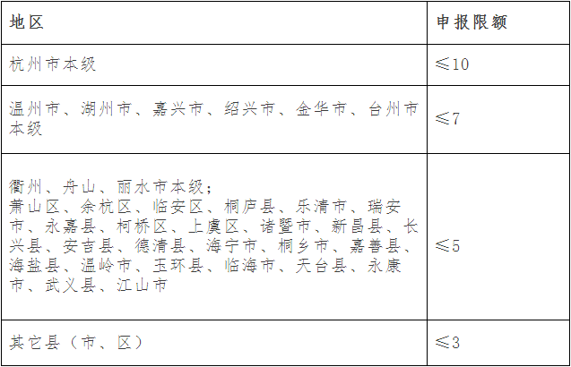 (三)實(shí)行限額推薦。綜合考慮各地裝備制造業(yè)企業(yè)數(shù)量、規(guī)模、結(jié)構(gòu)及特色情況,各地推薦申報(bào)首臺(tái)套產(chǎn)品實(shí)行差異化限額分配。為體現(xiàn)扶優(yōu)原則,對(duì)國務(wù)院通報(bào)表彰的2017年落實(shí)有關(guān)重大政策成效明顯地區(qū)、國家新型工業(yè)化裝備制造產(chǎn)業(yè)示范基地、浙江省高端裝備制造業(yè)特色基地申報(bào)名額適當(dāng)增加,其中對(duì)浙江省高端裝備制造業(yè)特色基地增加的名額要求用于與特色基地主業(yè)相關(guān)產(chǎn)品的申報(bào)。具體名額見附表。