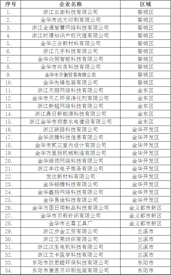 附件:2019年第一批浙江省科技型中小企業(yè)擬認(rèn)定名單(金華市)